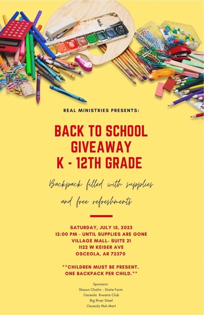 OSD Band T-shirt fundraiser starts today through September 1, 2023. T-shirts are $20.00 cash only. Payments should be turned into Sharice Yates, Band Coordinator at Osceola Middle School Campus.